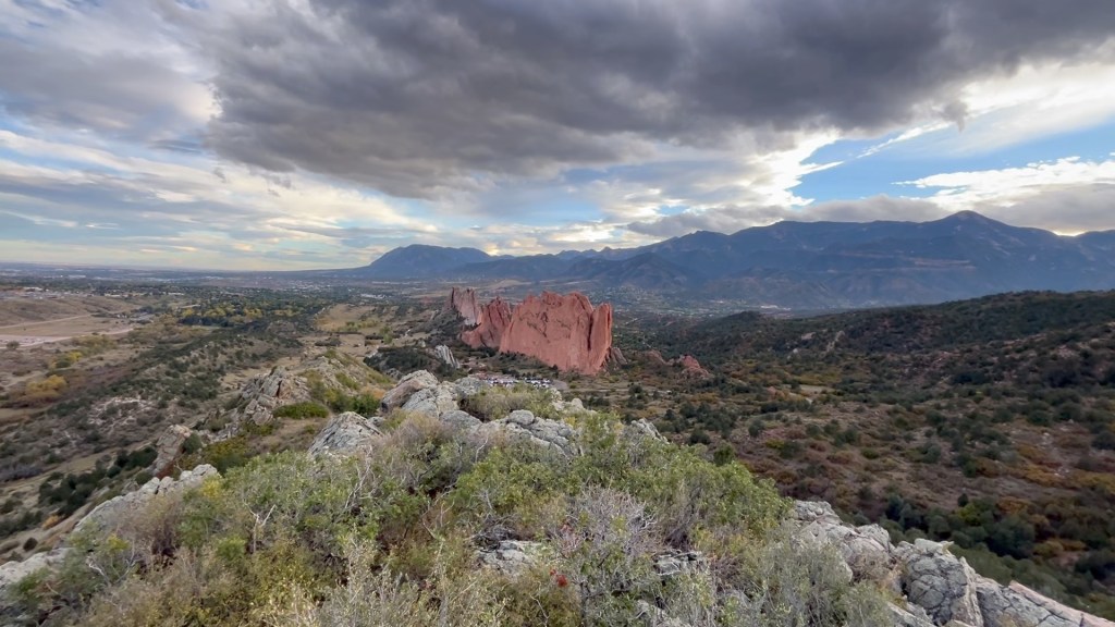 When I got to the top, I could clearly see the Garden of the Gods, a stunning collection of red rock formations, and the surrounding ridges and hills with Peaks Pike looming above.